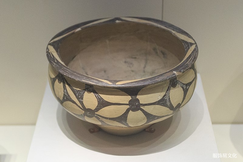 仰韶文化彩陶盘(公元前5000-3000年),河南镶黄地旧出土,1956年-带有类似花朵图案的花盆。