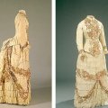绿松石色的婚纱也诉说着战争的稀缺与想象。1946 年 4 月 3 日,刺绣师 Alma Virginia Bechmann Strøh 在格洛斯楚普教堂与救生员军士长埃里克·斯蒂格·尼尔森 (Erik Stig Nielsen) 结婚。她的婚纱是用占领期间在日德兰半岛用来投掷武器的降落伞制成的。新郎的兄弟哈拉尔德·斯蒂格·尼尔森 (Harald Stig Nielsen) 是抵抗运动的成员,他收集并隐藏了降落伞。这件衣服的绿松石蓝色是原创的。新娘捧花由白色康乃馨组成,新娘鞋由棕色麂皮制成。