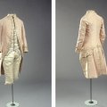 习惯为黑色羊毛,带有白色细双条纹。这件夹克是双排扣的,有2×3颗纽扣,其中上面一颗是装饰用的。宽翻领,尖袖。滚边口袋和倾斜胸袋。腰部较轻,背部较宽。垫肩。