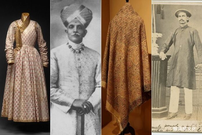 angarkha一词源自梵文Aṅgarakṣaka,意思是保护身体。安加尔卡在印度次大陆的不同地区都有穿着,虽然基本剪裁一如既往,但款式和长度因地区而异。Angarakha是印度次大陆传统的上衣,覆盖并固定在一侧或右肩上。一般来说,Angrakha 是一种宫廷服装,个人可以将其折叠起来,提供了适应性强的简单性,束带和领带适合在旧印度的不同地区穿着