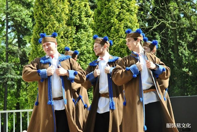 在寒冷的天气和更正式的场合,男士们会穿一件名为“sukmana”的羊毛大衣,如右上图所示。它最初是由称为 sukno 的家庭编织毛制,“黑”羊的羊毛纺成。这块布料非常厚实,而且非常硬挺。苏克马纳始终是这种天然的棕色。剪裁有所不同,在 Tanew – Taniw 河以北,他们有立领,