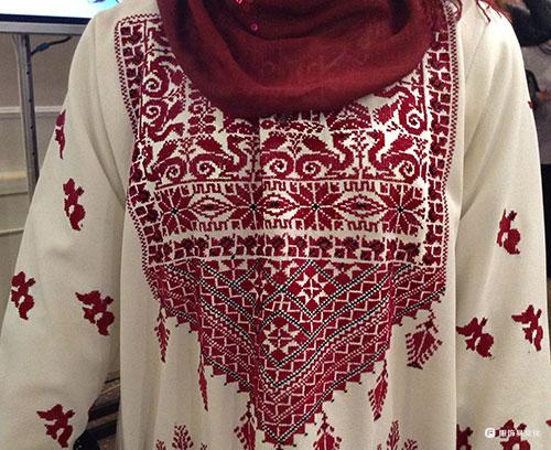 如果说巴勒斯坦服装和刺绣的颜色,白色底布适合夏季,黑色适合冬季。白色和黑色衣服上的针线可能相似,但它们会在相应的季节穿着。于针脚,刺绣的红色意味着美丽和生命,红色让我想血是我们的生命力。很多黑色刺绣可以象征哀悼,这样的衣服有时会在抗议或其他悲伤事件时穿着。