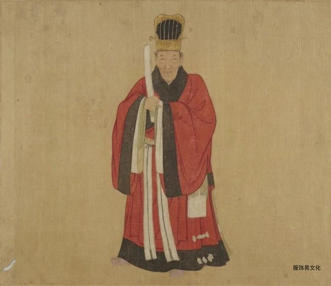 陆树声朝服像, 头戴梁冠。所戴梁冠有梁五条,是三品官所戴。陆树声(1509年-1605年)明朝官员。