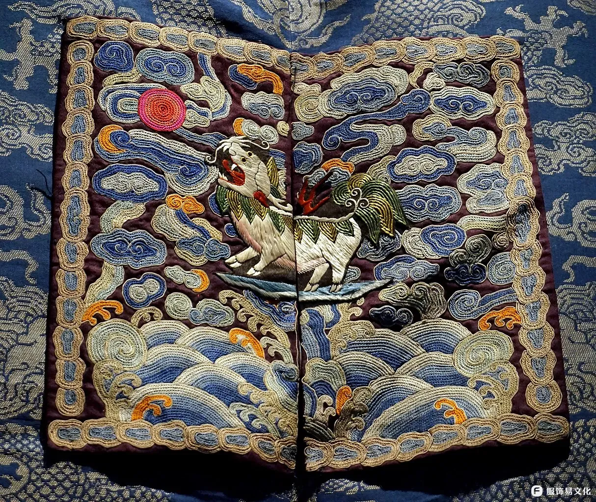 - 清徐定超御史蟒袍补子,上绣獬豸以示公正。温州博物馆藏。