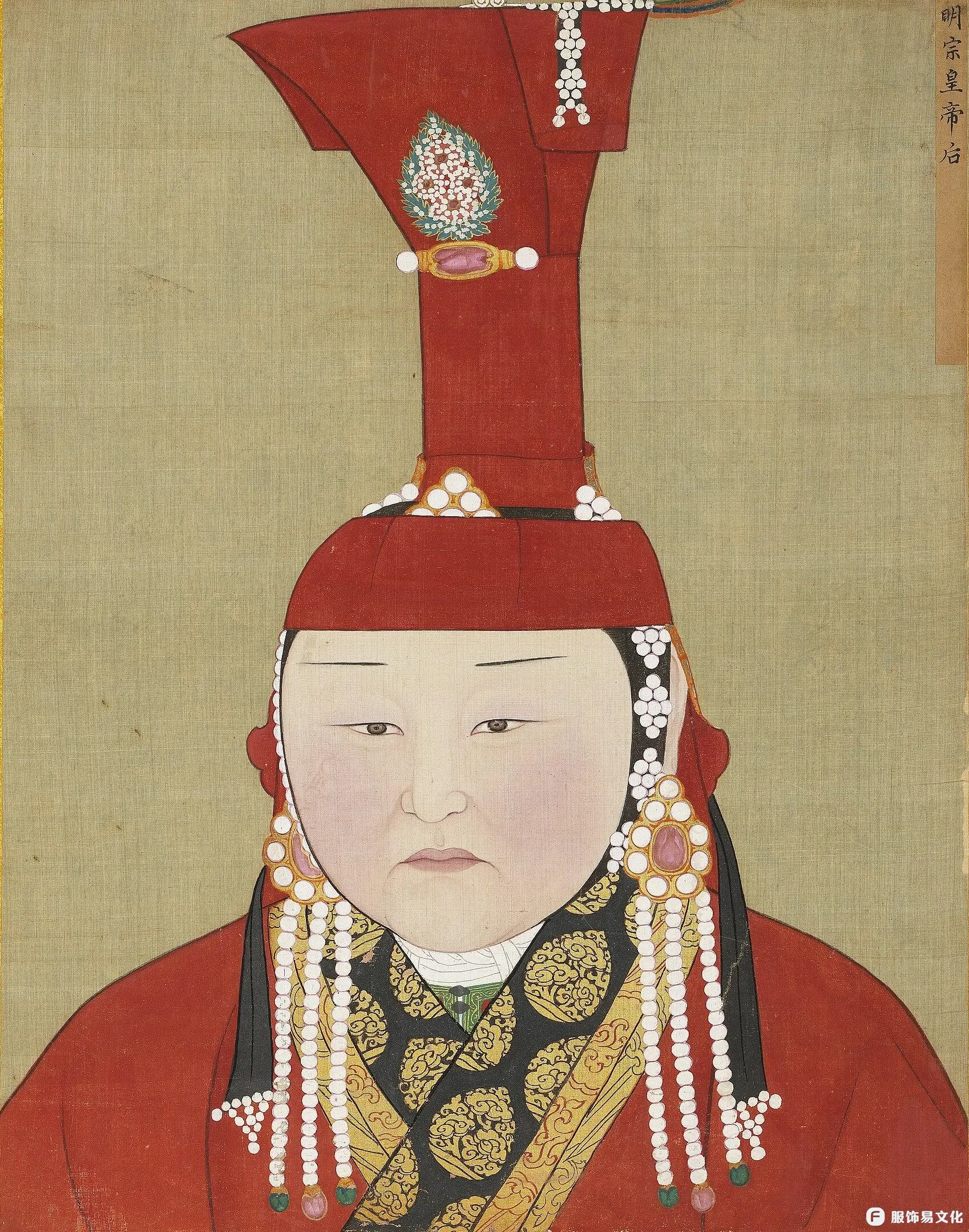 蒙古族的帽子,像一部穿在头上的史书,每个样式都对应着一段岁月。最传奇的 “顾固冠”:元代贵妇的 “高定”如果你穿越到元代的草原,会看到贵族妇女头上顶着一座 “小塔”—— 那是高约一尺的顾固冠(蒙古语 “孛黑塔”)。它以轻薄的桦树皮为骨架,缝成细长的筒状,顶部镶着金银,裹着五颜六色的绸缎,缀满珍珠宝石,甚至还垂着长长的流苏。走路时流苏摇曳,远远望去,像一座移动的 “珠宝山”。