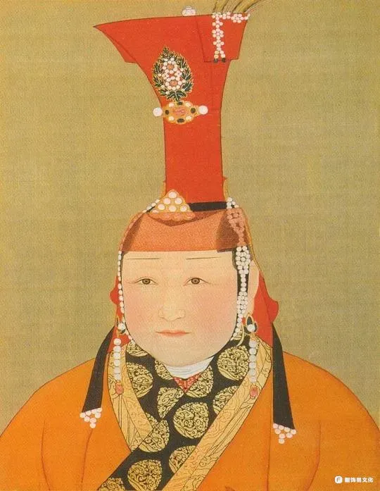 顾固冠:元代蒙古族已婚女子流行的高冠,蒙古语称 “孛黑塔”,汉文史籍称固姑冠、故姑冠或罟罟冠。以桦树皮围合缝制,成长筒形,高约一尺,顶部为四边形,上面包裹着五颜六色的绸缎,缀有各种宝石,元代后失传。