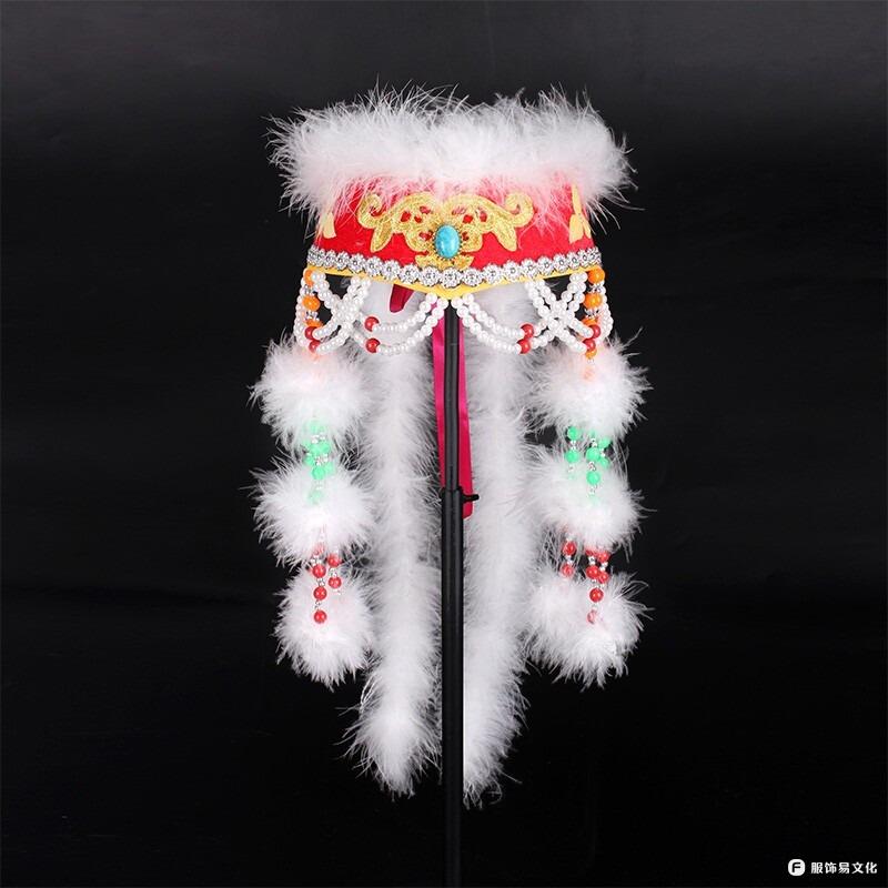 蒙古礼帽:一般用精致呢料制作,是一种椭圆形的、四周有一圈宽边檐的帽子,多为黑色、棕色或灰色。帽筒前高后低,帽顶中央稍凹陷,帽筒与帽檐相接处,缀以花纹镶边,穿蒙古袍或西服佩戴,显得文雅美观扎鲁特旗人民政府