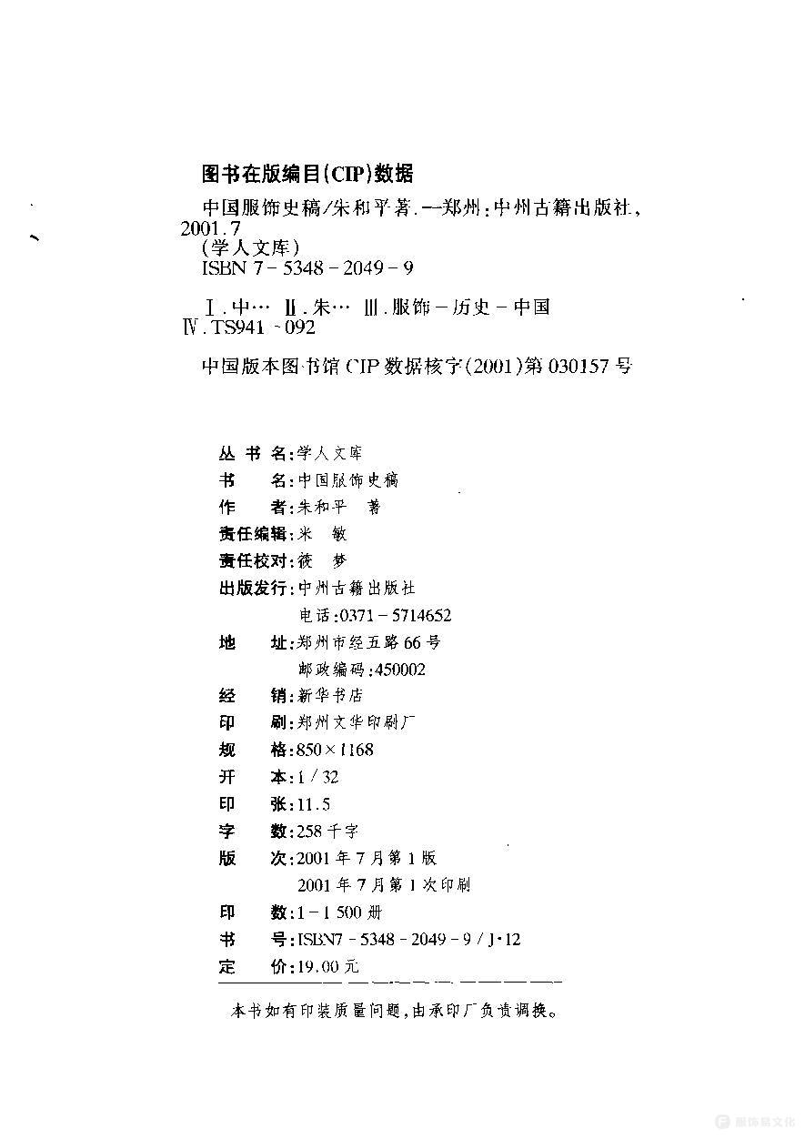 《中国服饰史稿》朱和平 PDF